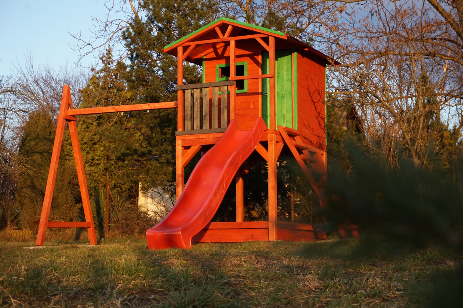 Házikós fa játszótér , csúszdával,hintával,mászófallal